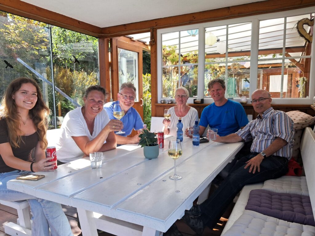 bij Rodger waarbij Mayra een heerlijke pompoenentaart heeft klaargemaakt. Mayra, Bertus,